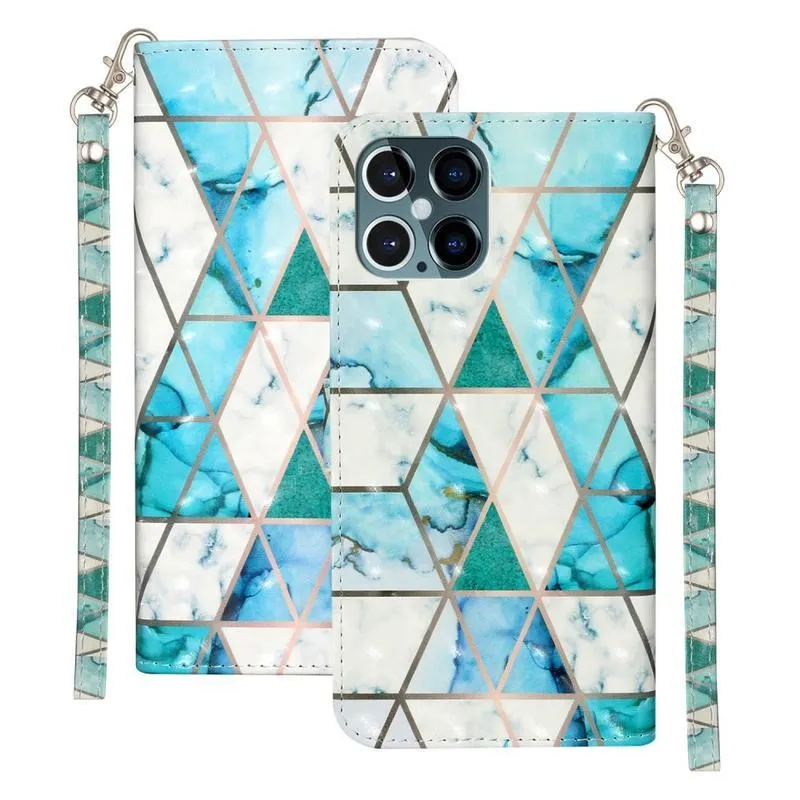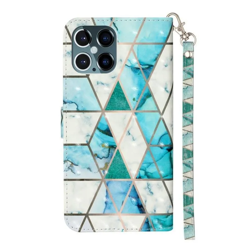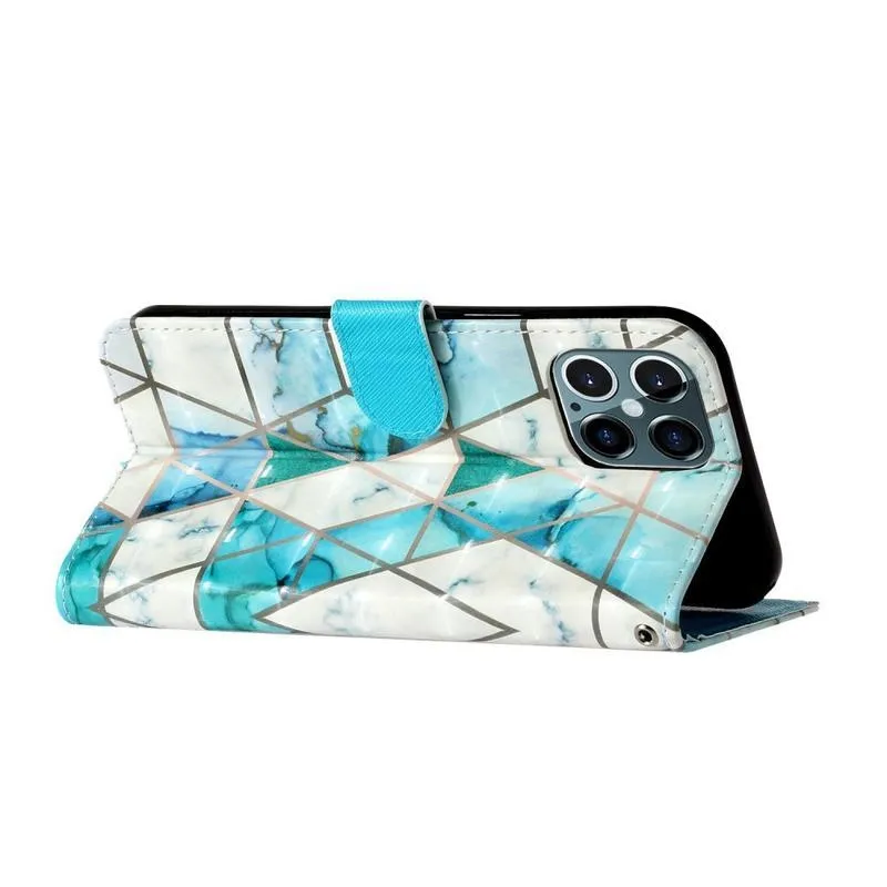 Dekor PU bőr pénztárca tok mobiltelefonhoz iPhone 12 Pro/12 - kőminta