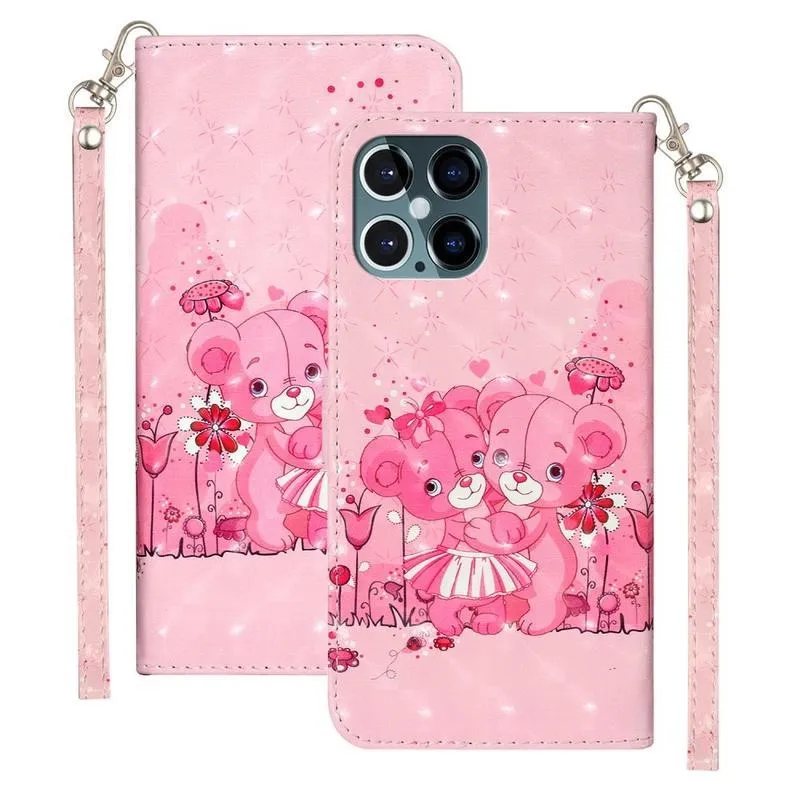 Dekor PU bőr pénztárca tok mobiltelefonhoz iPhone 12 Pro/12 - mackók