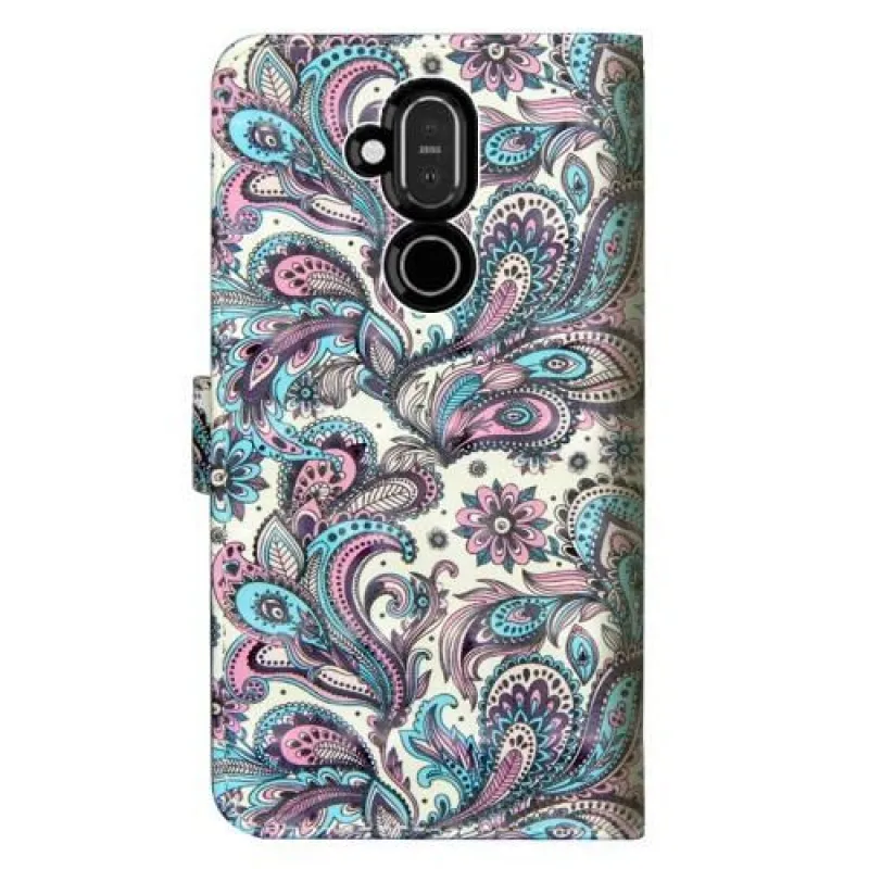 Dekor PU bőr pénztárca tok Nokia 8.1 készülékhez - kasmír virág