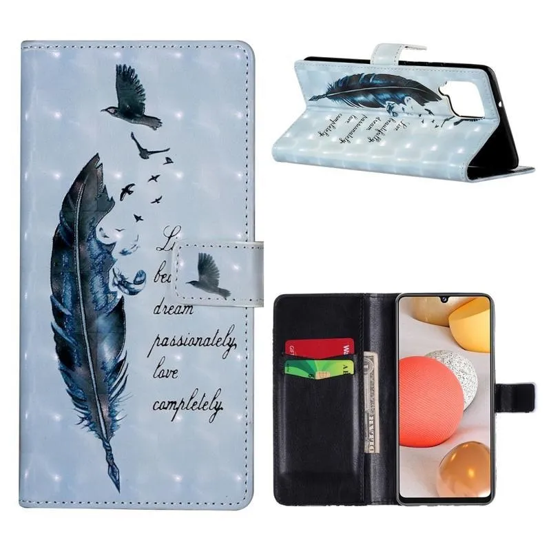 Dekor PU bőr pénztárca tok Samsung Galaxy A42 5G számára - kék toll