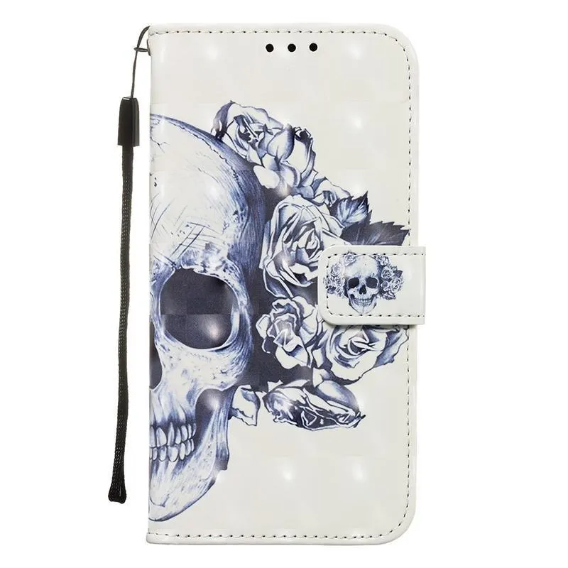 Dekor PU bőr pénztárca tok Samsung Galaxy S20 Plus-hoz - koponya