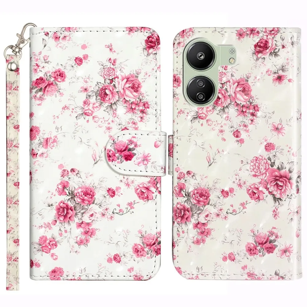 Tárca tok Dekoráció képpel a Xiaomi Poco C65/Redmi 13C 4G/5G számára - virágok
