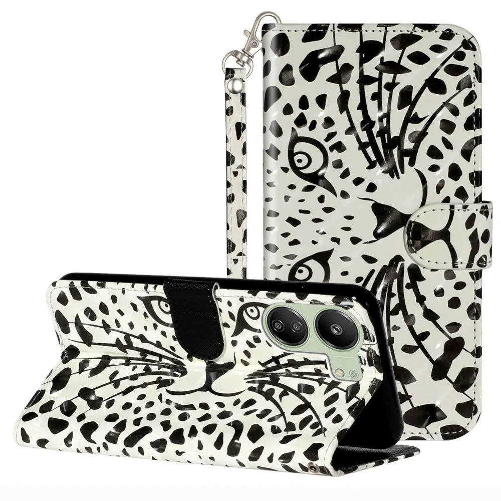 Tárca tok Dekoráció képpel Xiaomi Poco C65/Redmi 13C számára - leopárd arcú