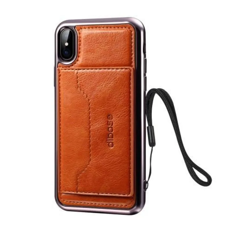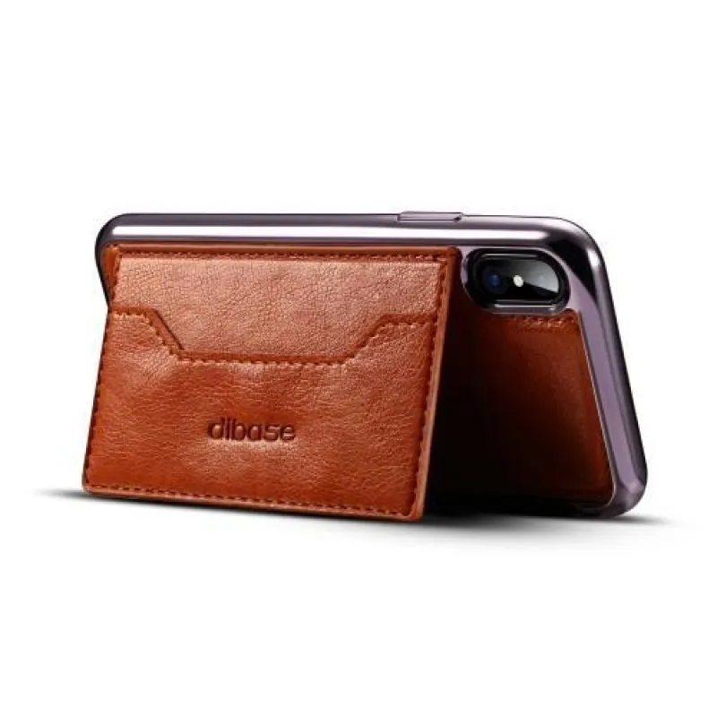 Diba zselés tok PU bőr hátlappal és állvány funkcióval iPhone X készülékhez - barna