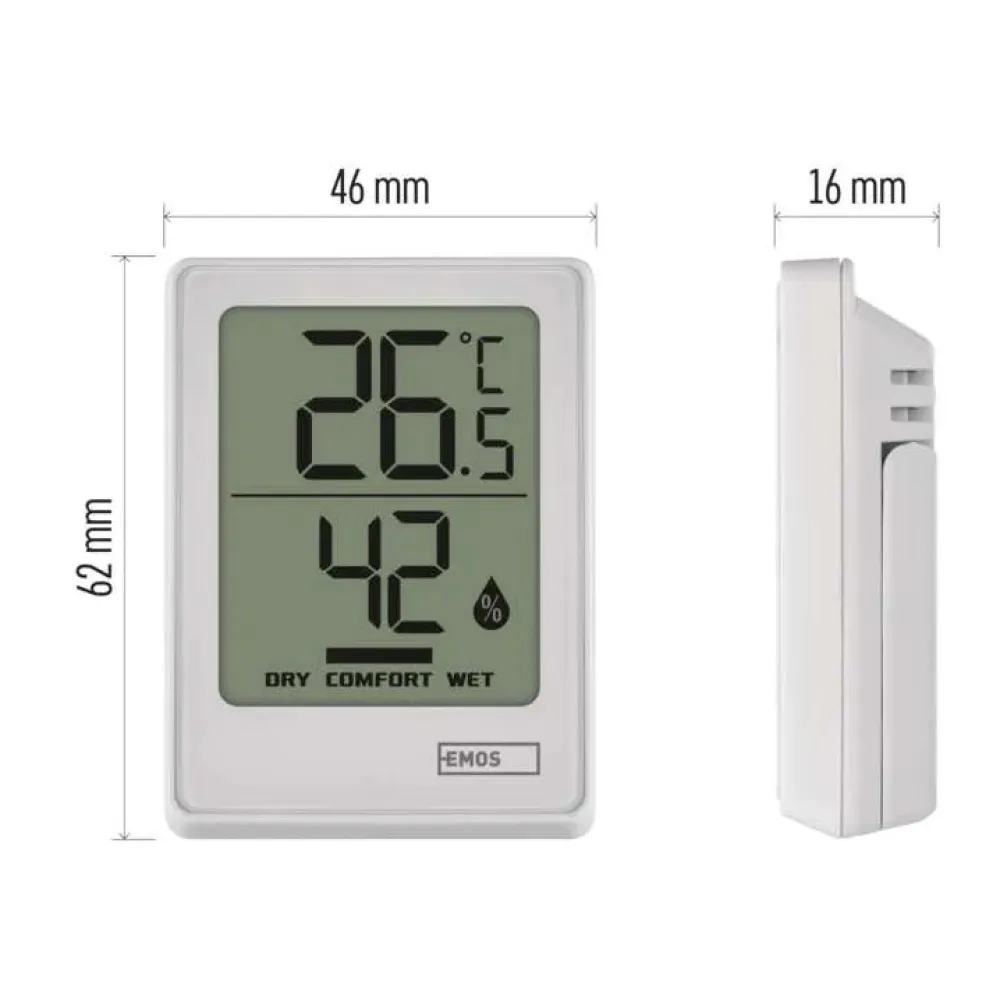 Az E0345 hőmérő előnye az elhelyezés sokoldalúsága. Asztalra vagy polcra állítható, falra akasztható, vagy a hátoldalán található mágnes segítségével egyszerűen bármilyen fémfelületre rögzíthető.