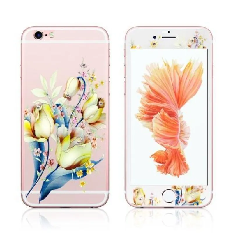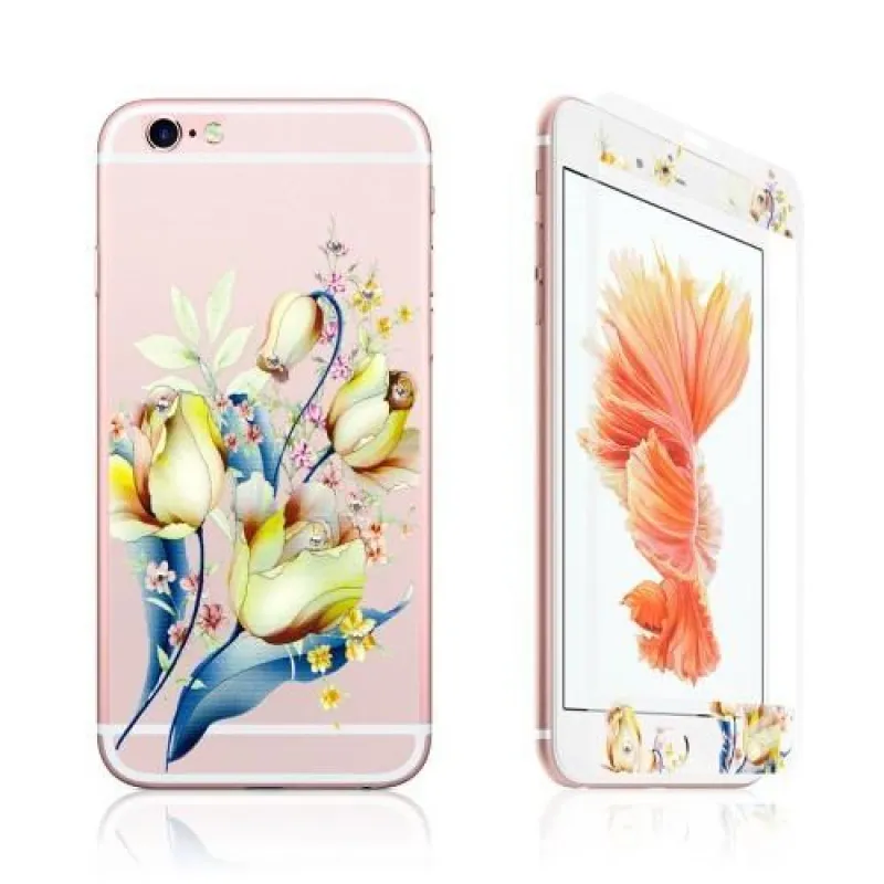 Díszített elülső és hátsó edzett üveg az iPhone 6 és 6s készülékeken - tulipánok