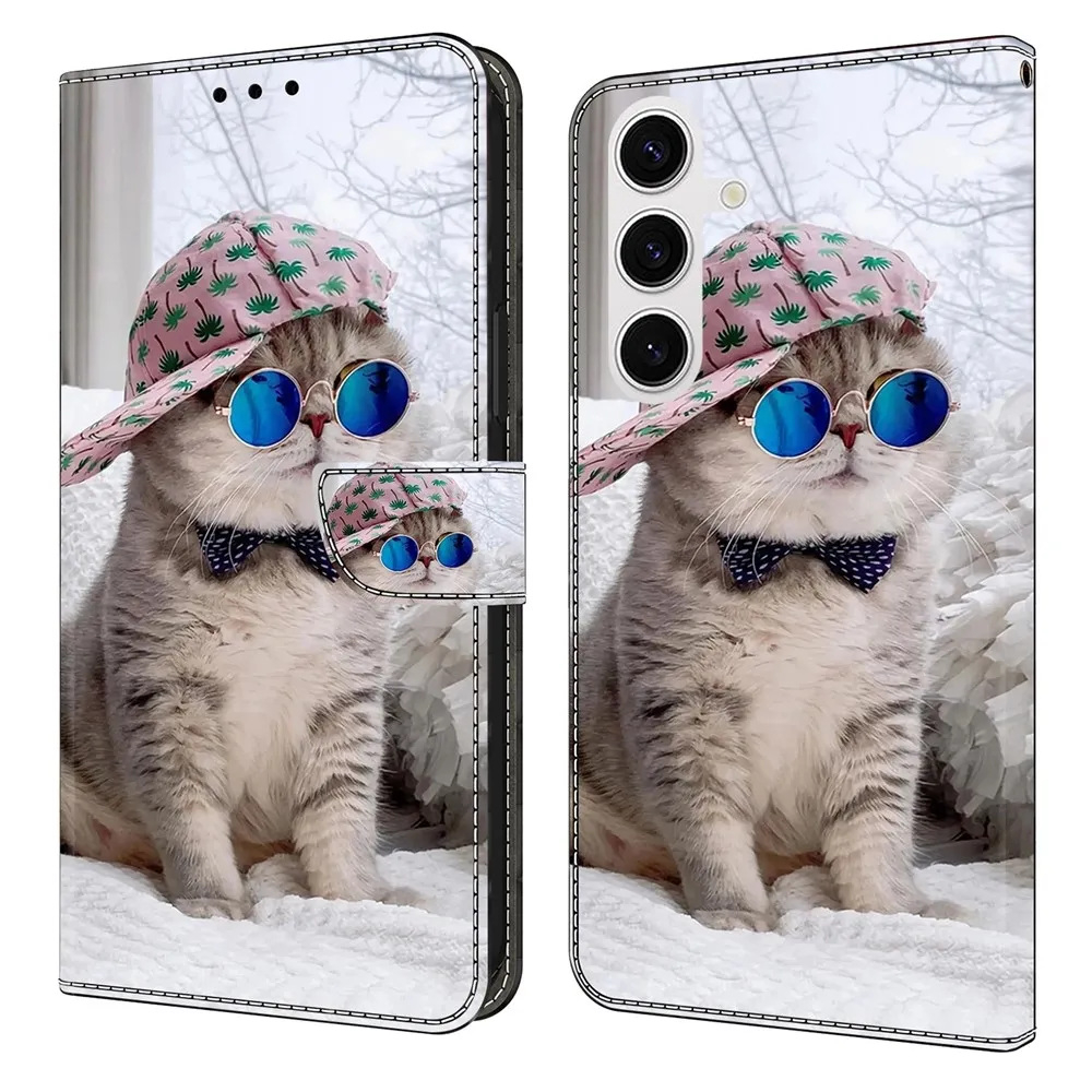 Tárca tok Fashion s motívum macska egy sapkában a mobiltelefonon Samsung Galaxy S26/S26 Pro