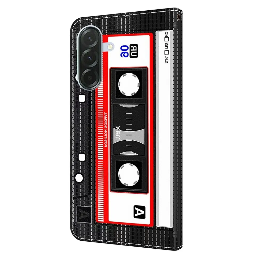 Tárca tok Fashion s motivem audio kazetta mobiltelefonon Samsung Galaxy A37 5G