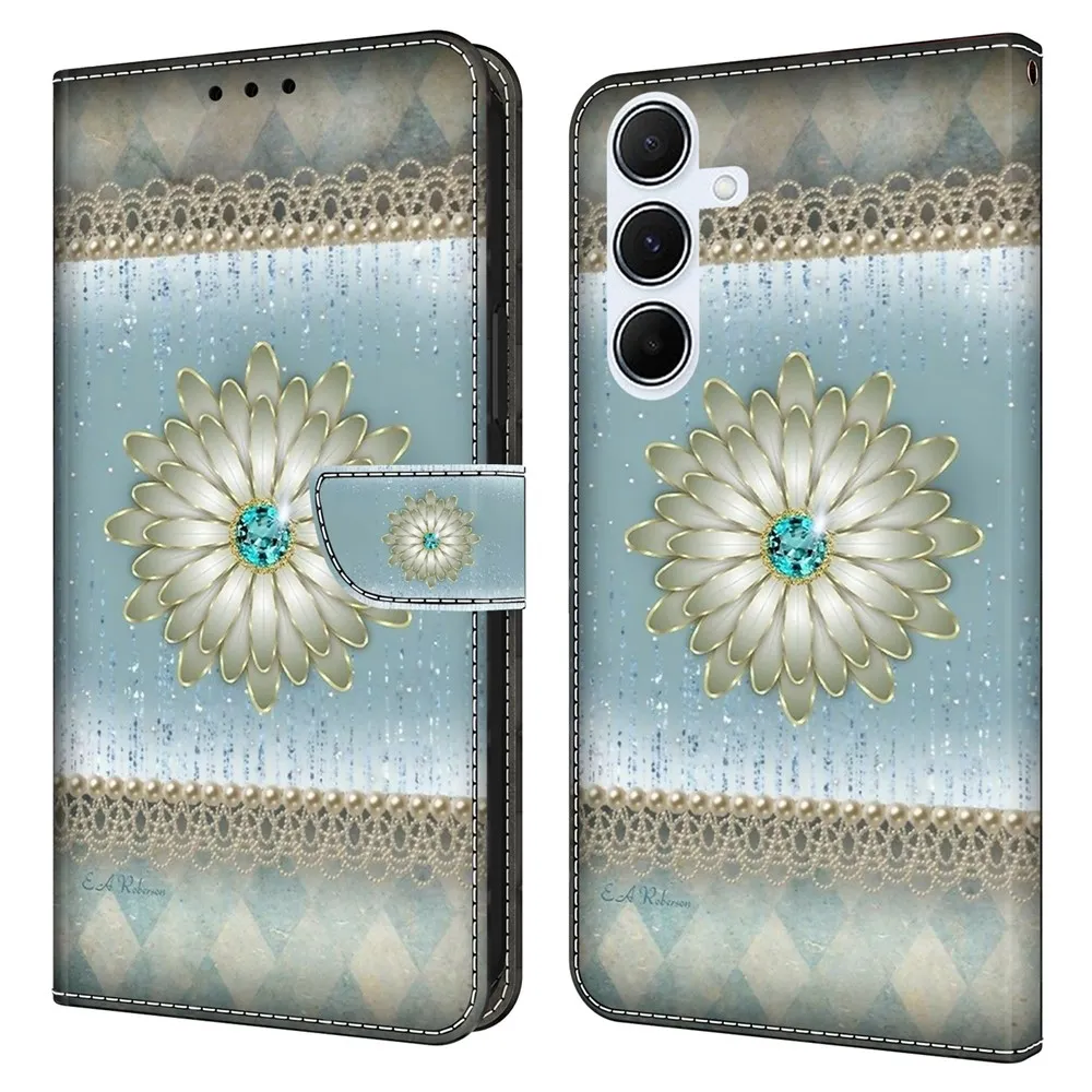 Tárca tok Divat s motívum gyémánt virág mobiltelefonon Samsung Galaxy A56 5G
