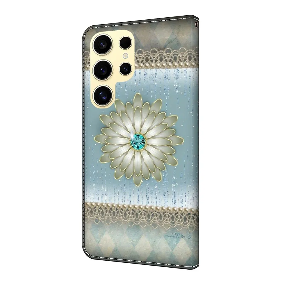Tárca tok Divat s motivem gyémánt virág mobil Samsung Galaxy S26 Ultra