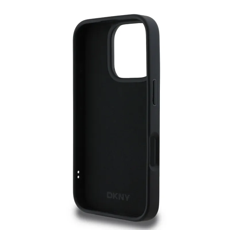 DKNY 3D gumiból készült ismételt logó vonalas hátlap iPhone 16 Pro Max készülékhez Fekete