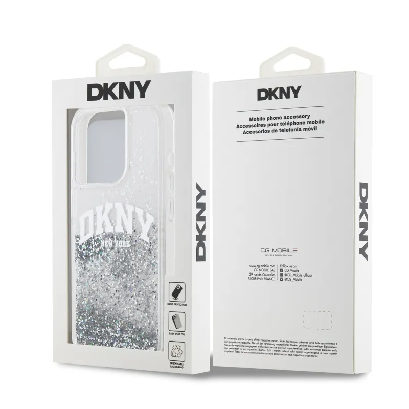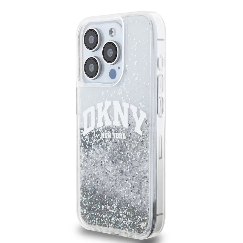 DKNY Liquid Glitter Arch Logo hátlap iPhone 14 Pro-hoz átlátszó