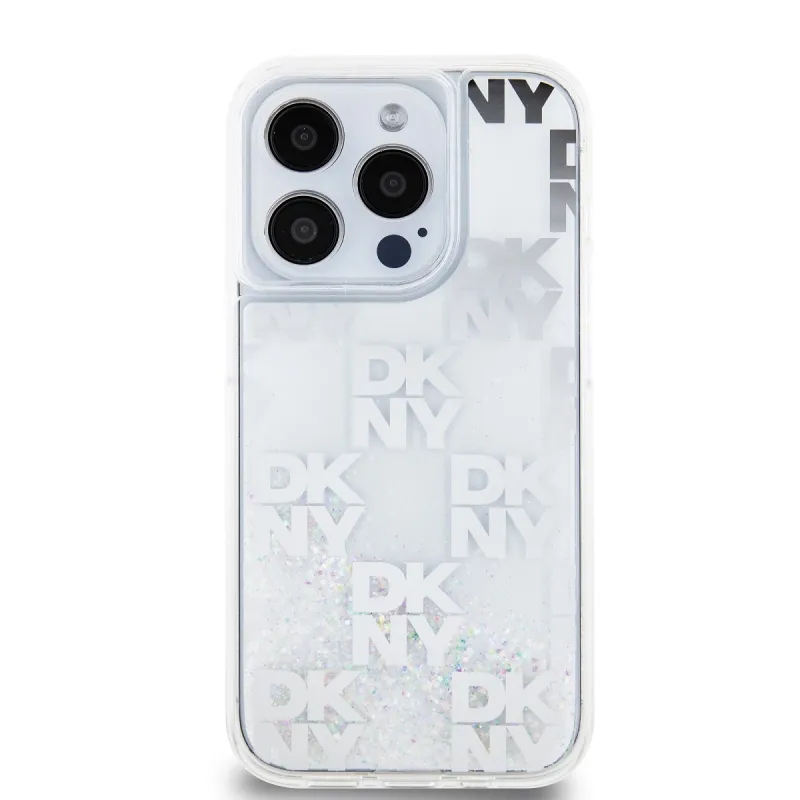DKNY Liquid Glitter Checkered Pattern hátlap iPhone 15 Pro-hoz Átlátszó