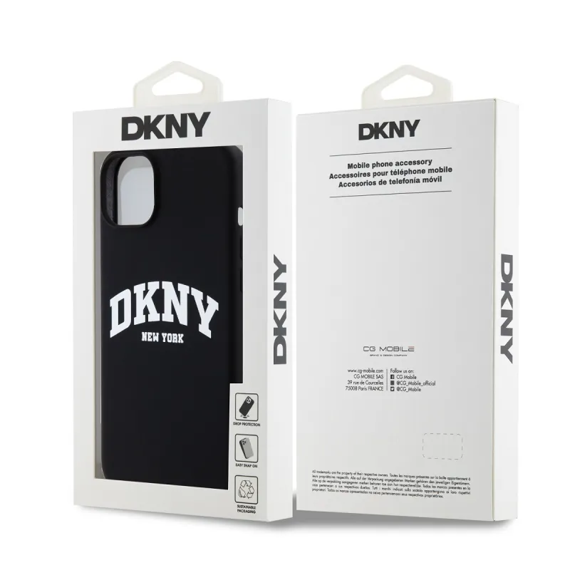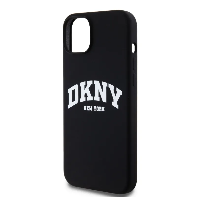 DKNY Liquid Silicone Arch Logo MagSafe hátlapi borító iPhone 15 Plus-hoz Fekete