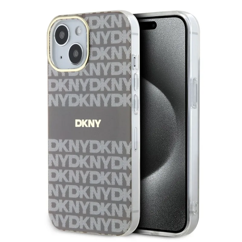 DKNY PC/TPU ismétlődő mintás tonális csíkos Magsafe hátlap iPhone 14 bézs színű iPhone 14-hez