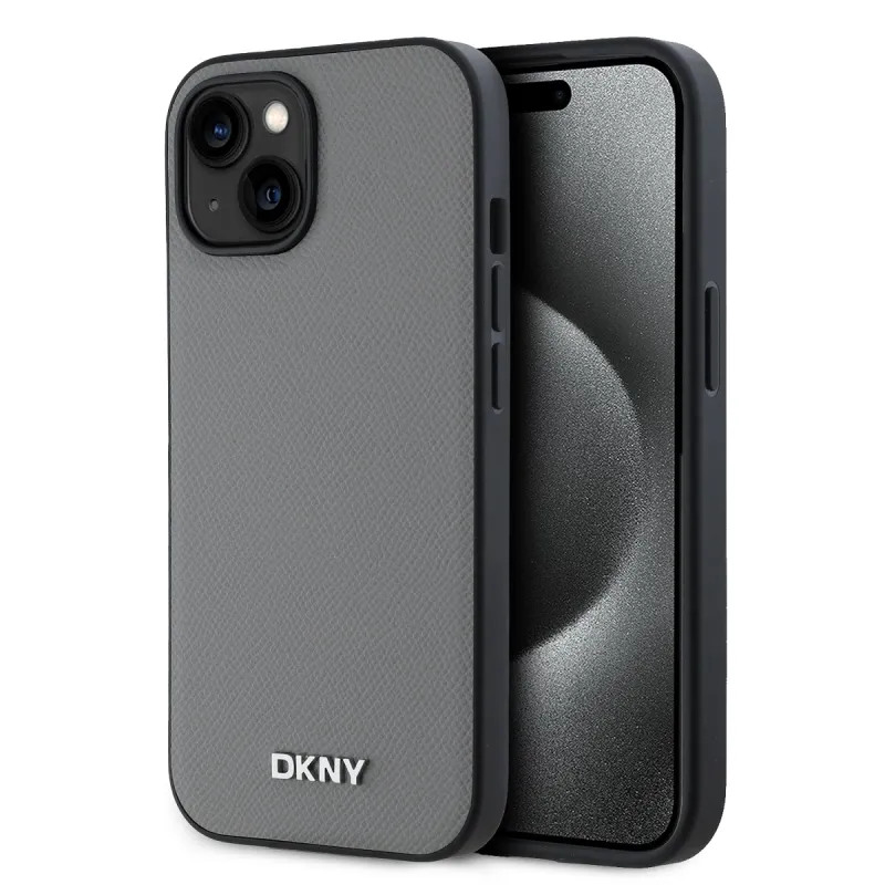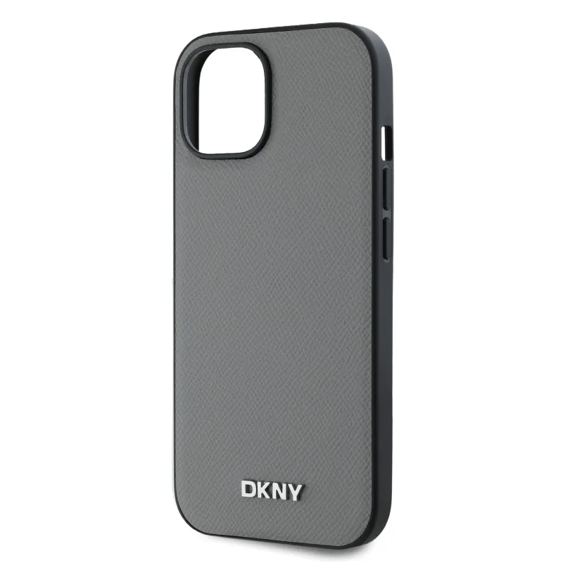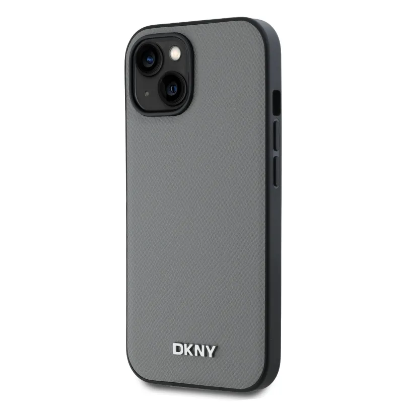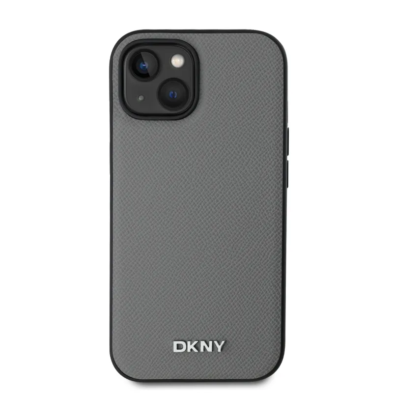 DKNY PU bőr ezüst fém logó Magsafe hátlap iPhone 13 szürke iPhone 13-hoz szürke