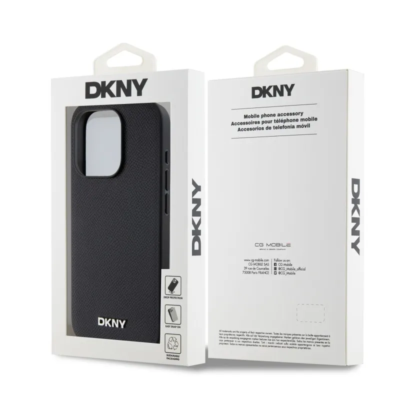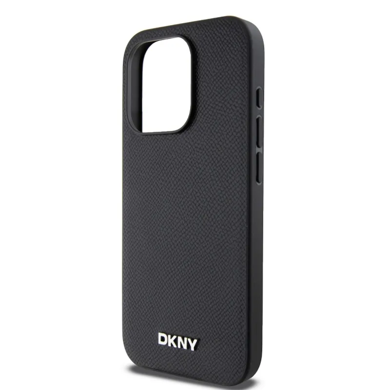 DKNY PU bőr ezüst fém logó Magsafe hátlap iPhone 15 Pro Fekete