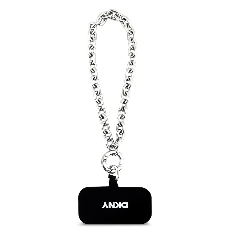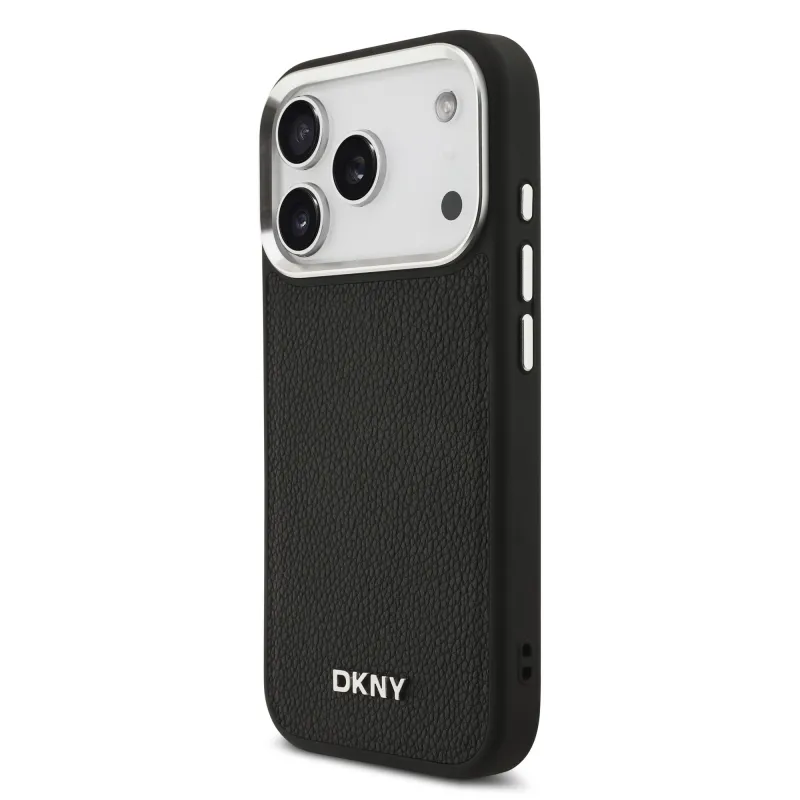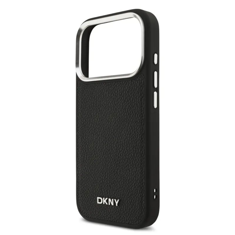DKNY PU bőr fém logós csuklólánc MagSafe hátlap iPhone 17 Pro fekete színűre