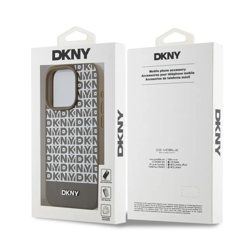 DKNY PU bőr Ismétlődő mintás alsó csík MagSafe hátlap iPhone 14 Pro Max-hoz Barna barna