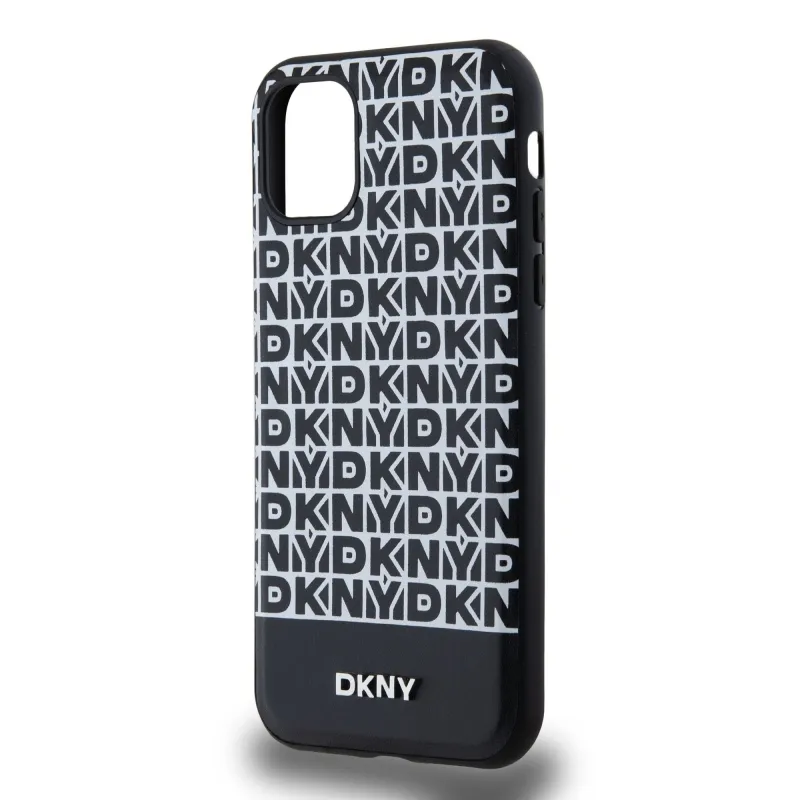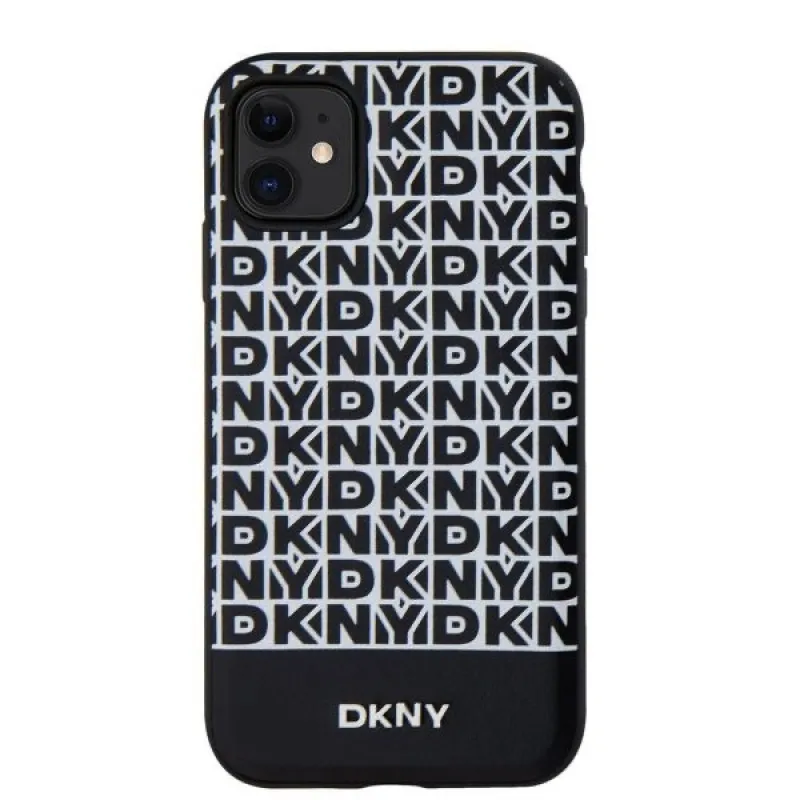 DKNY PU bőr ismétlődő mintás alsó csíkos MagSafe hátlap iPhone 11-hez Fekete