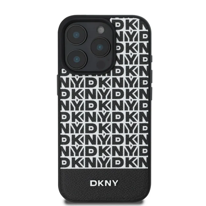 DKNY PU bőr ismétlődő mintás alsó csíkos MagSafe hátlap iPhone 16 Pro Max-hoz Fekete