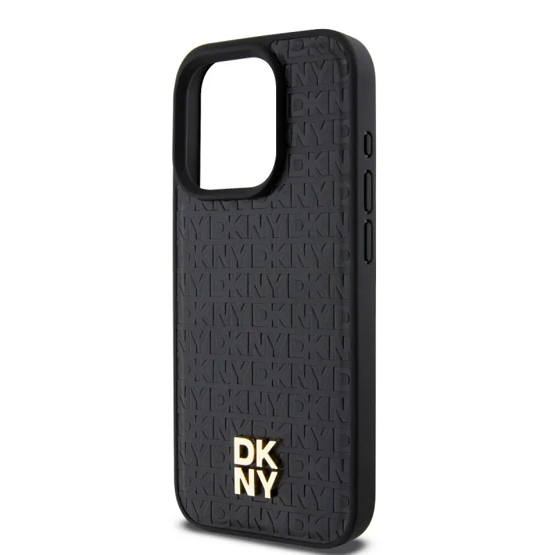 DKNY PU bőr Ismétlődő mintás Stack Logo Magsafe hátlap iPhone 13 Pro Fekete