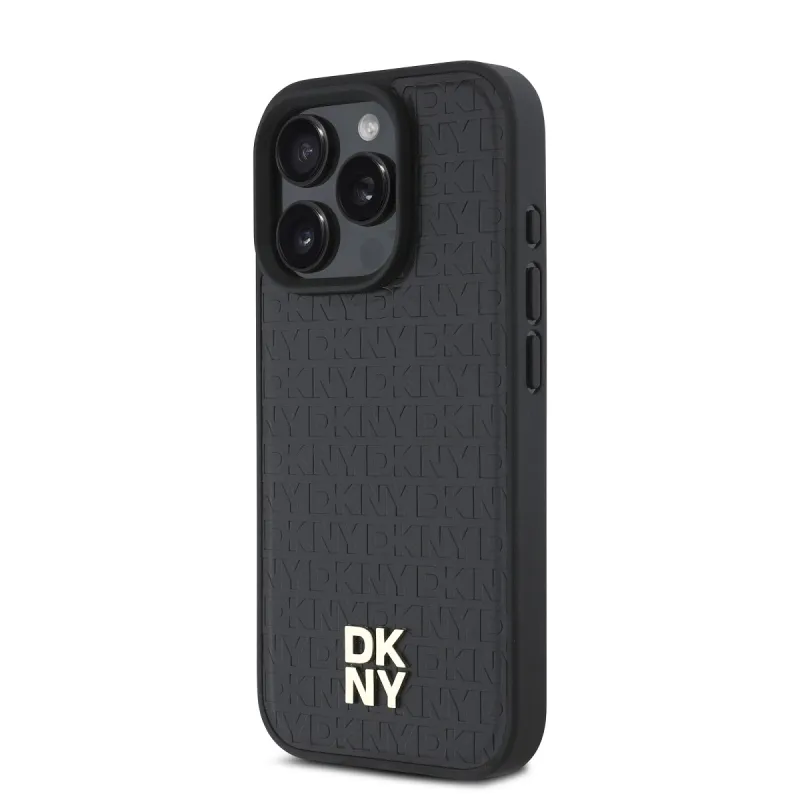 DKNY PU bőr Ismétlődő mintás Stack Logo MagSafe hátlap iPhone 16 Pro Max-hoz Fekete