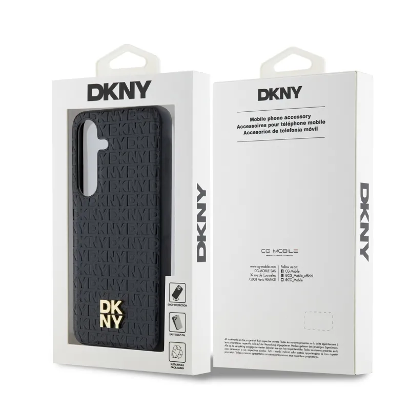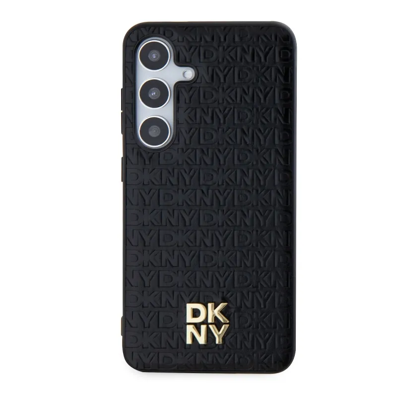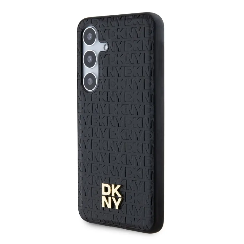 DKNY PU bőr Ismétlődő mintás Stack Logo Magsafe hátlap Samsung Galaxy S24 fekete