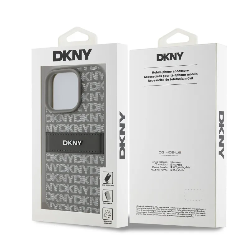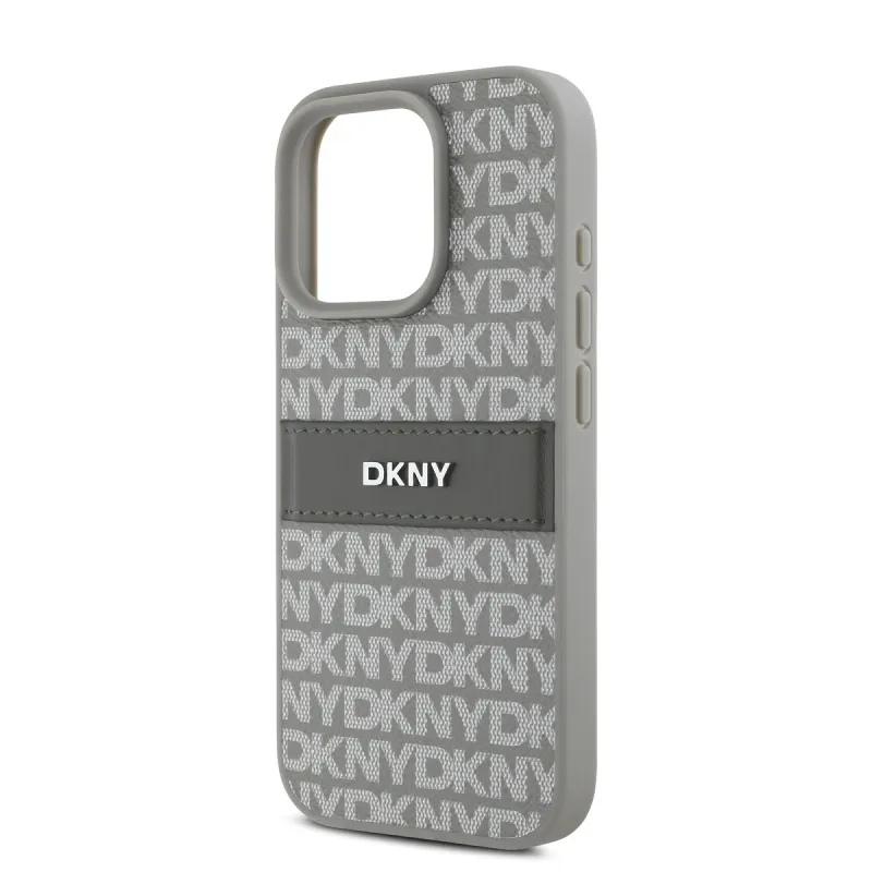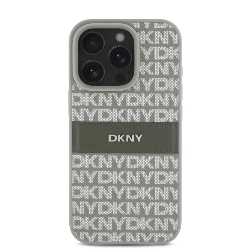 DKNY PU bőr ismétlődő mintás tonális csíkos hátlap iPhone 16 Pro Max bézs színű borítóhoz