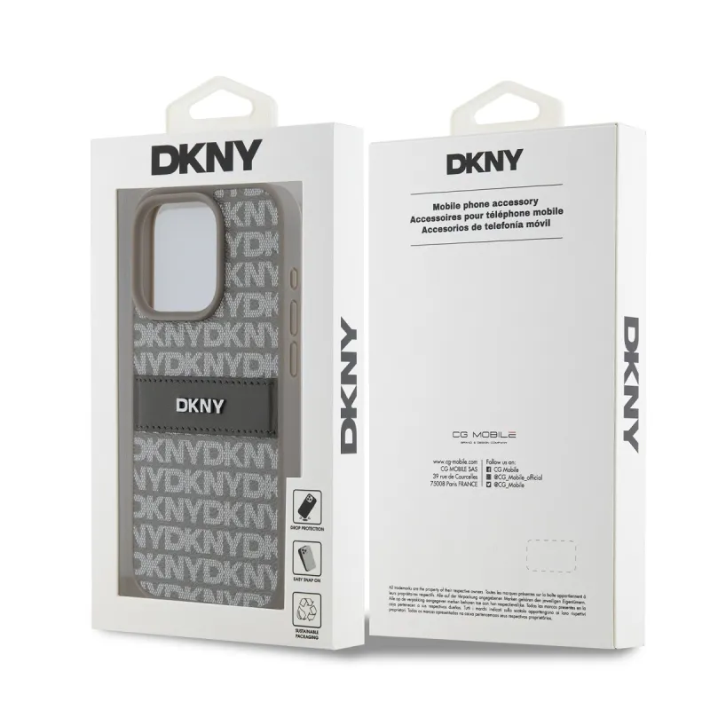 DKNY PU bőr ismétlődő mintás tonális csíkos hátlapi borító iPhone 14 Pro Max bézs színűhöz