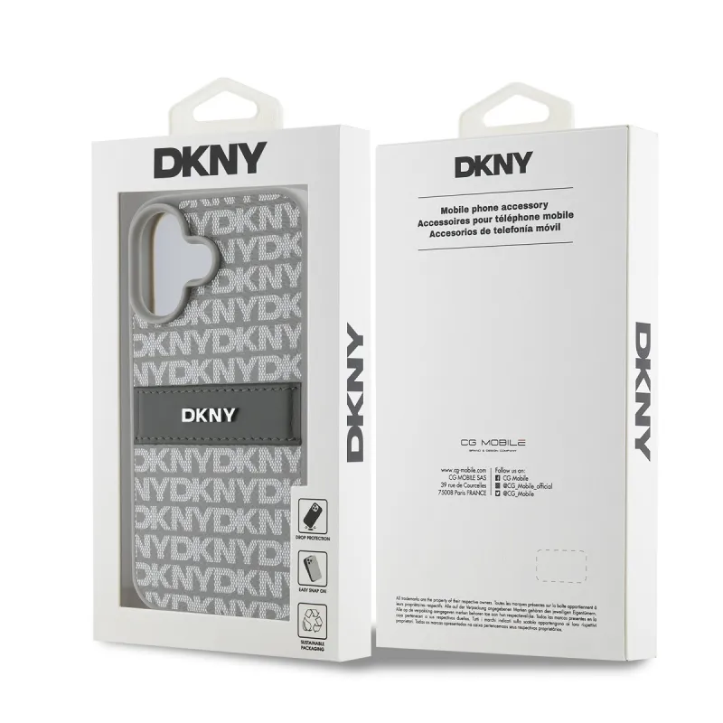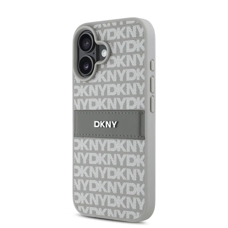 DKNY PU bőr ismétlődő mintás tonális csíkos hátlapi borító iPhone 16 bézs színűre