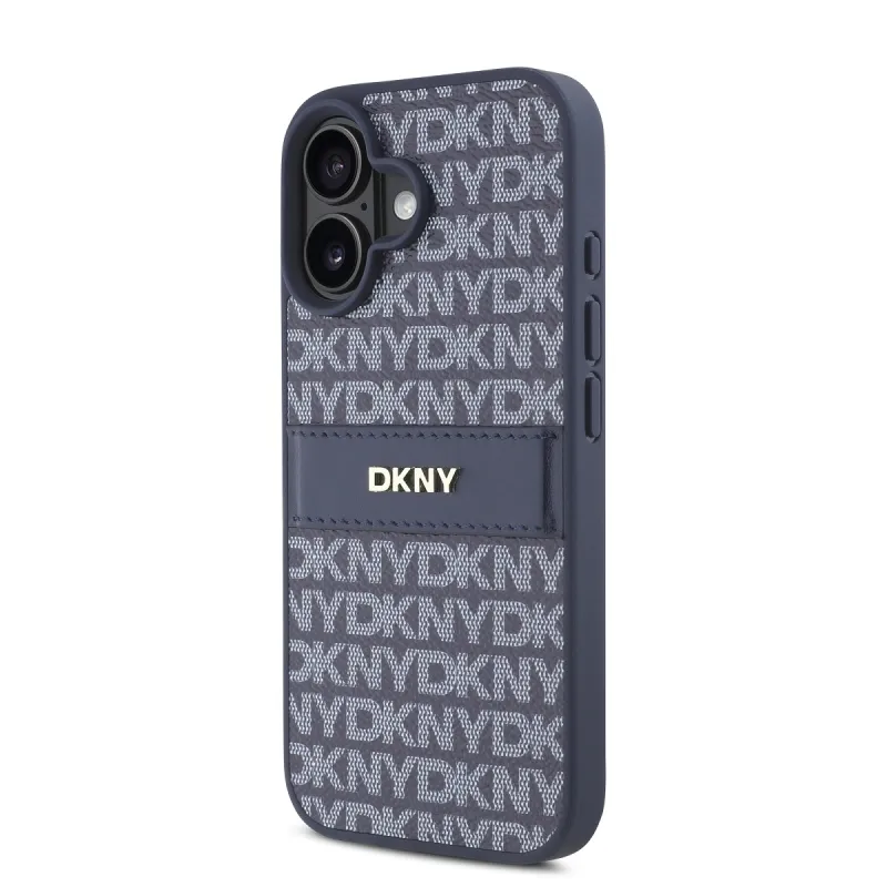 DKNY PU bőr ismétlődő mintás tonális csíkos hátlapi borító iPhone 16 kékhez