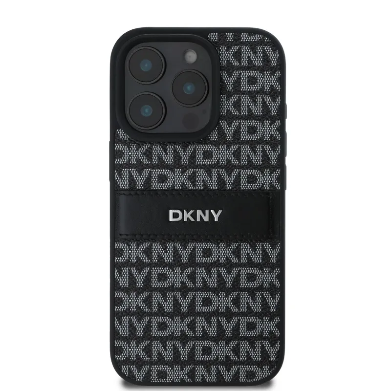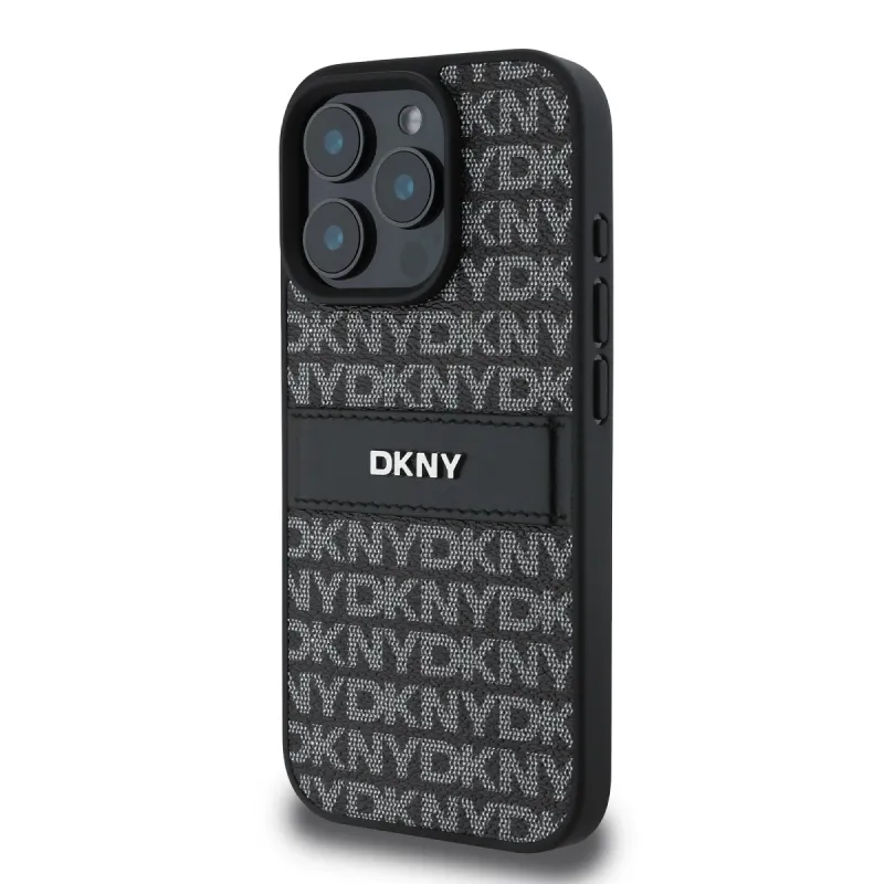 DKNY PU bőr ismétlődő mintás tonális csíkos hátlapi borító iPhone 16 Pro Max-hoz Fekete