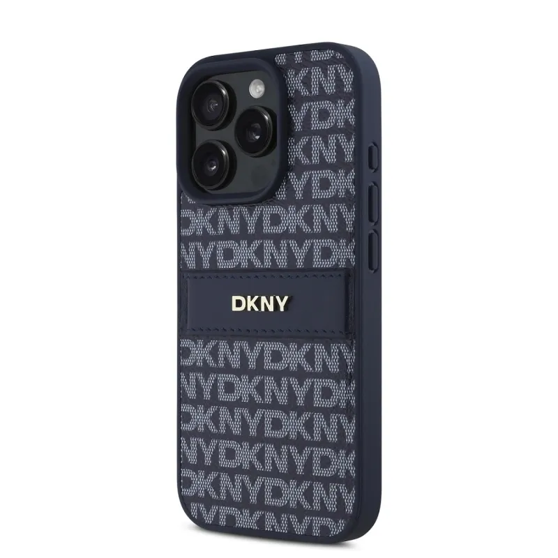 DKNY PU bőr ismétlődő mintás tonális csíkos hátlapi borító iPhone 16 Pro Max kékhez