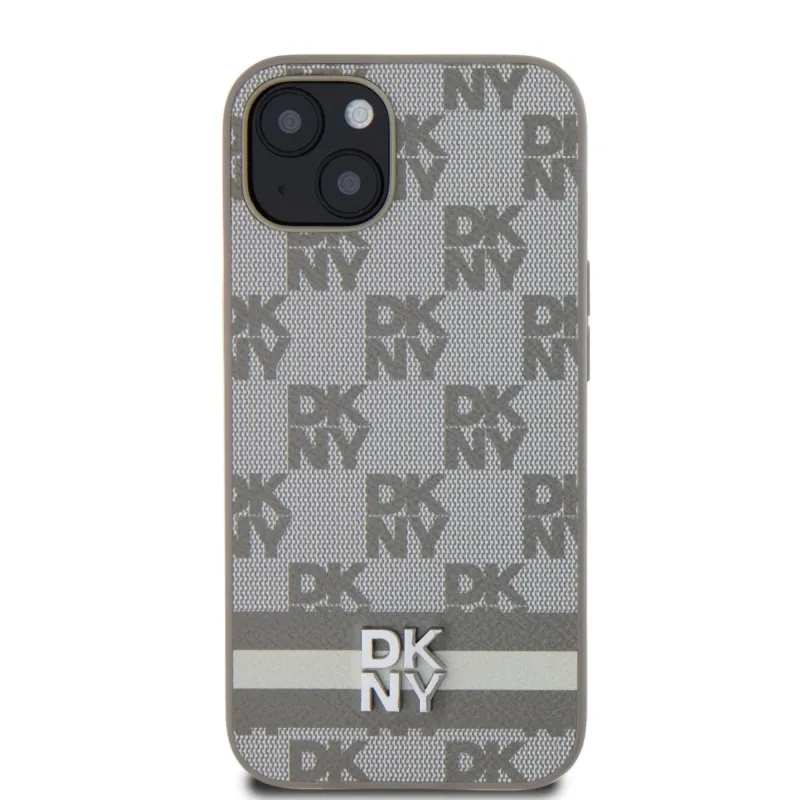 DKNY PU bőr kockás mintás és csíkos hátlapi borító iPhone 13 bézs színű készülékhez