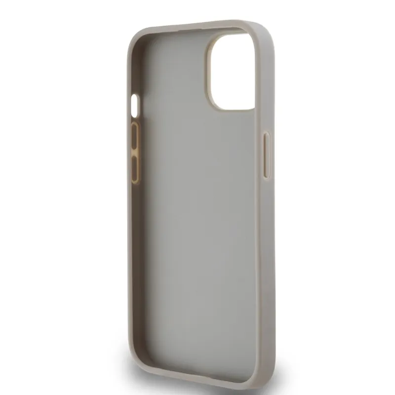 DKNY PU bőr kockás mintás és csíkos hátlapi borító iPhone 15 bézs színű készülékhez