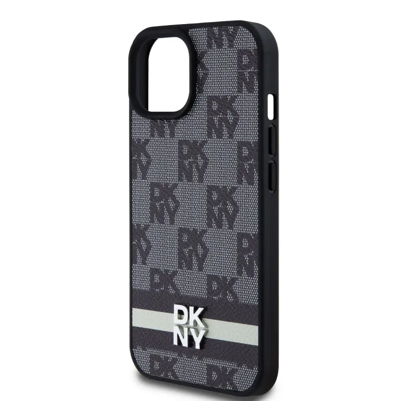 DKNY PU bőr kockás mintás és csíkos hátlapi borító iPhone 15-hez Fekete
