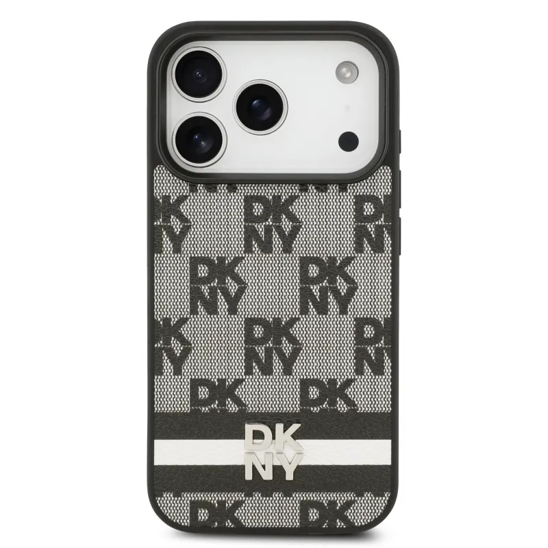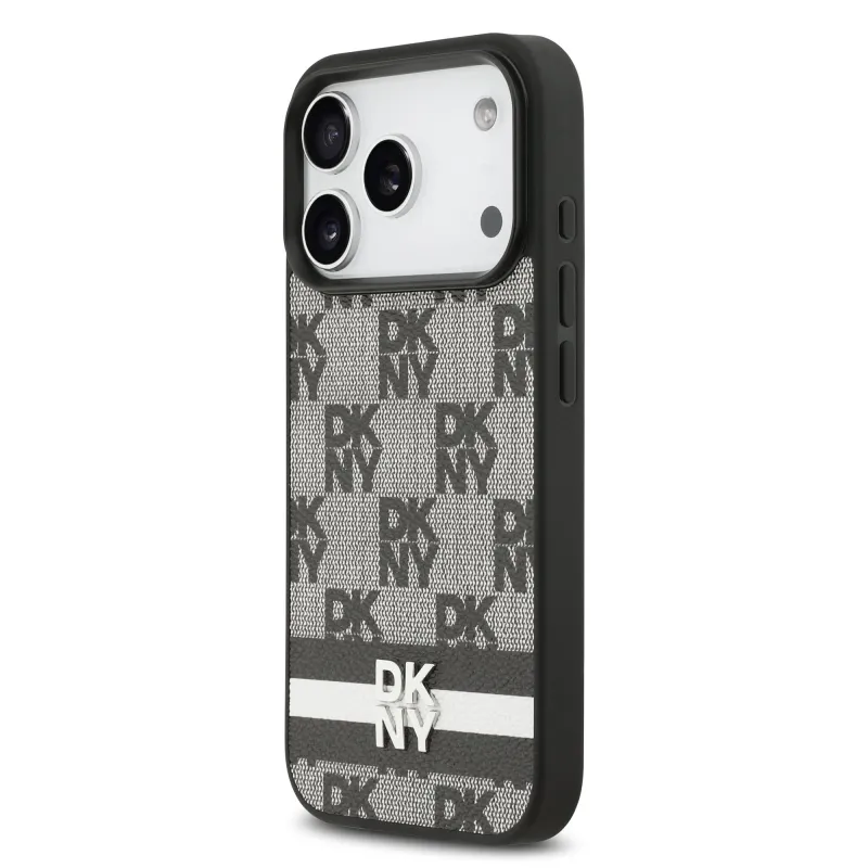 DKNY PU bőr kockás mintás és csíkos hátlapi borító iPhone 17 Pro fekete színűhöz