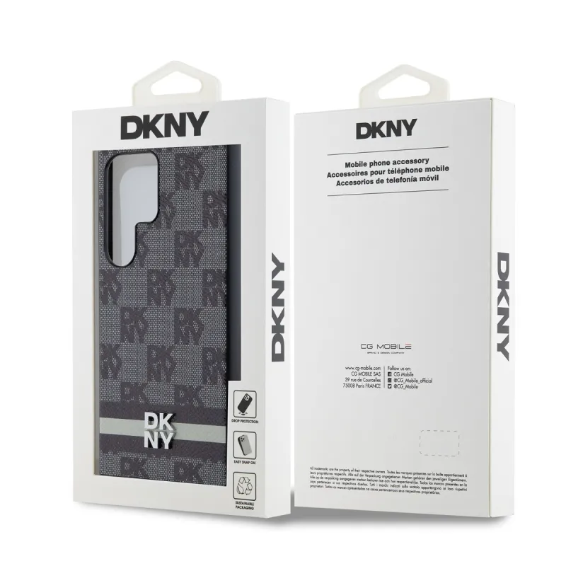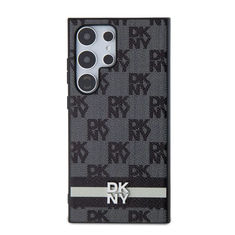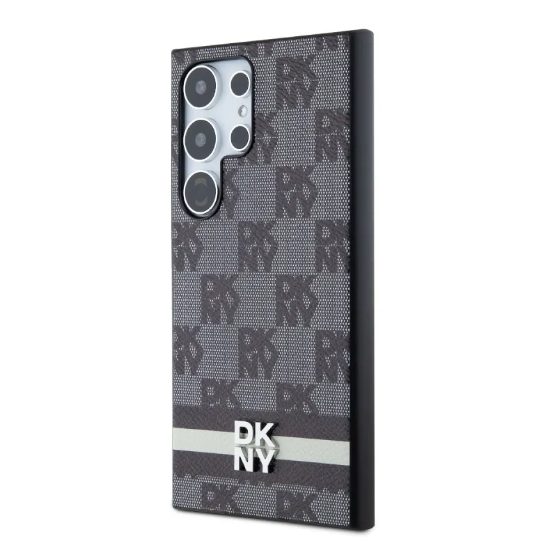 DKNY PU bőr kockás mintás és csíkos hátlapi borító Samsung Galaxy S24 Ultra fekete