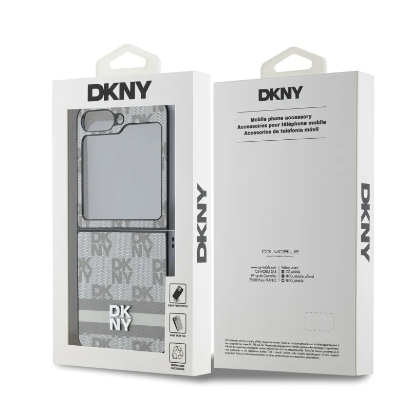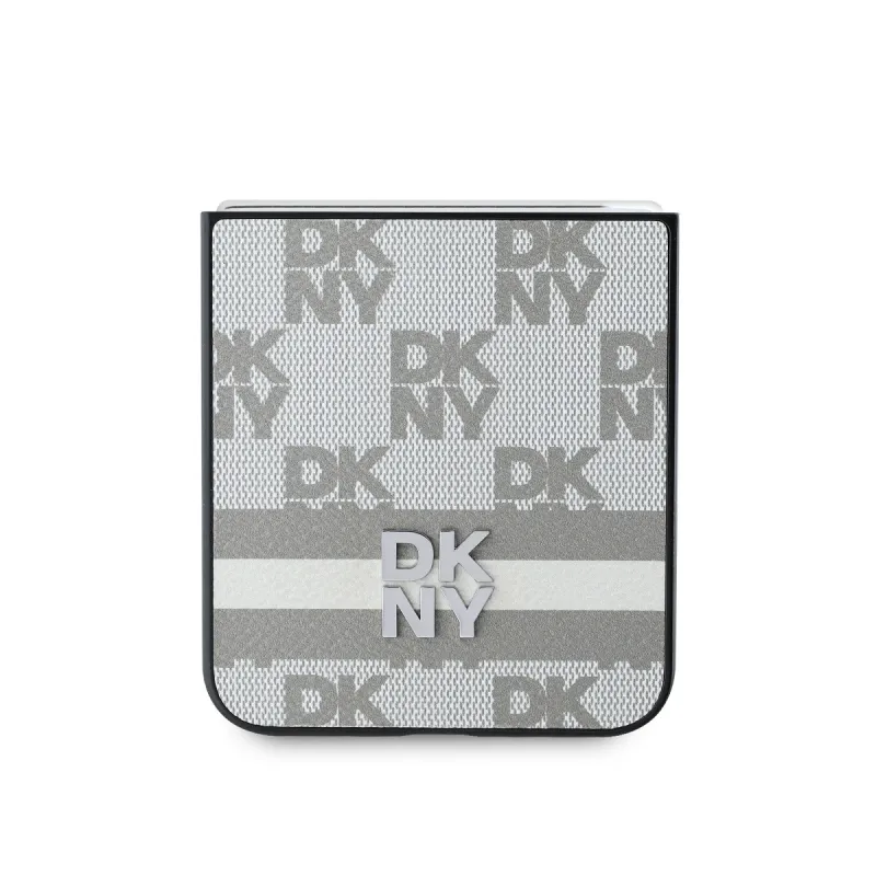 DKNY PU bőr kockás mintás és csíkos hátsó borító Samsung Galaxy Z Flip 6 bézs színűhöz