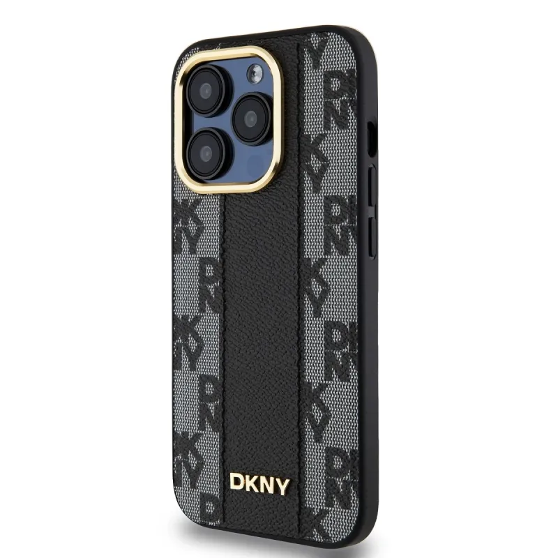 DKNY PU bőr kockás mintás Magsafe hátlap iPhone 15 Pro Fekete