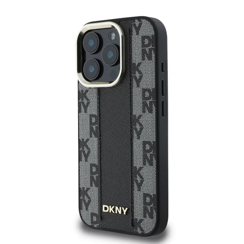 DKNY PU bőr kockás mintás Magsafe hátlap iPhone 16 Pro Fekete