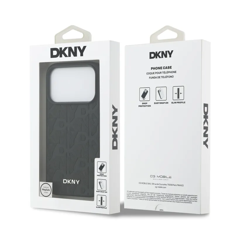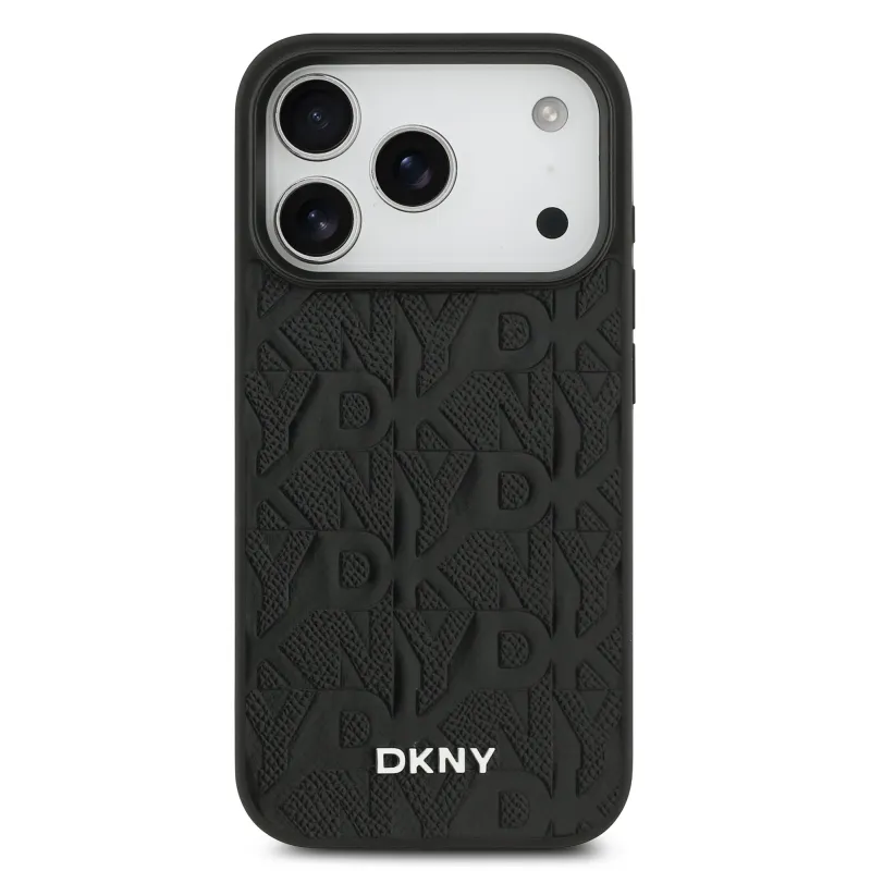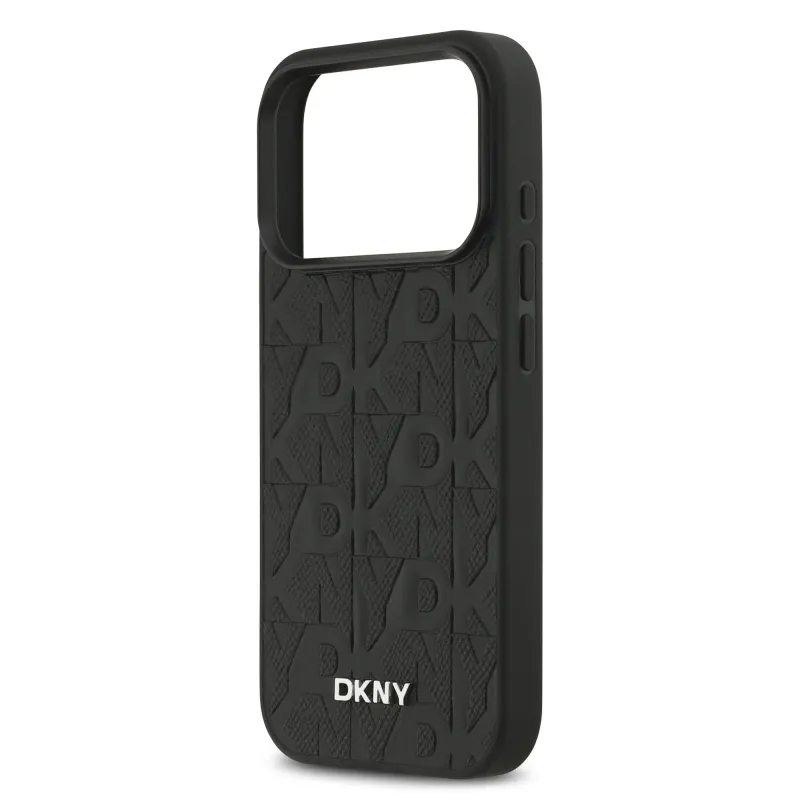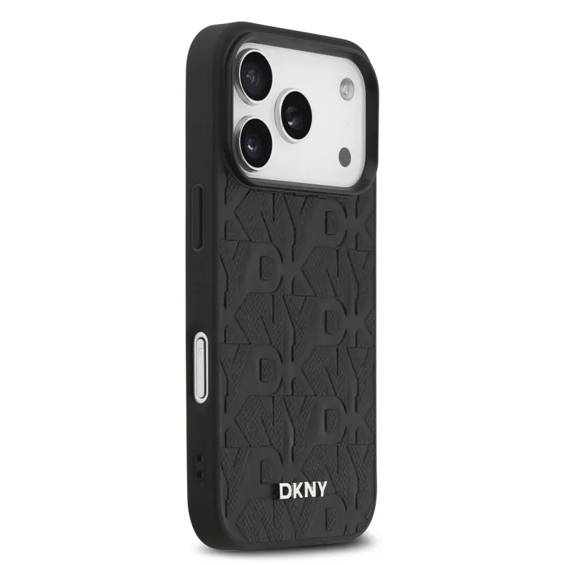 DKNY PU bőr rácsmintás Magsafe hátlap iPhone 17 Pro fekete színűre