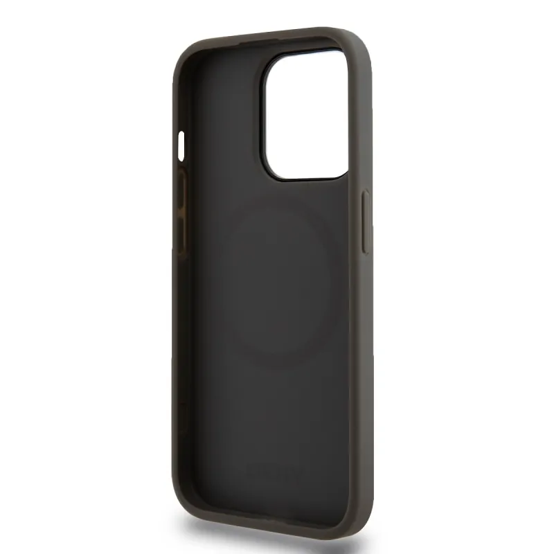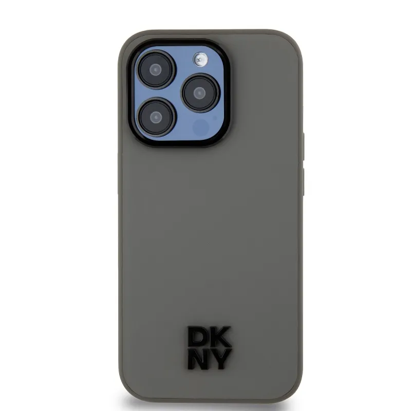 DKNY PU bőr Stack Logo Magsafe hátlap iPhone 15 Pro szürke