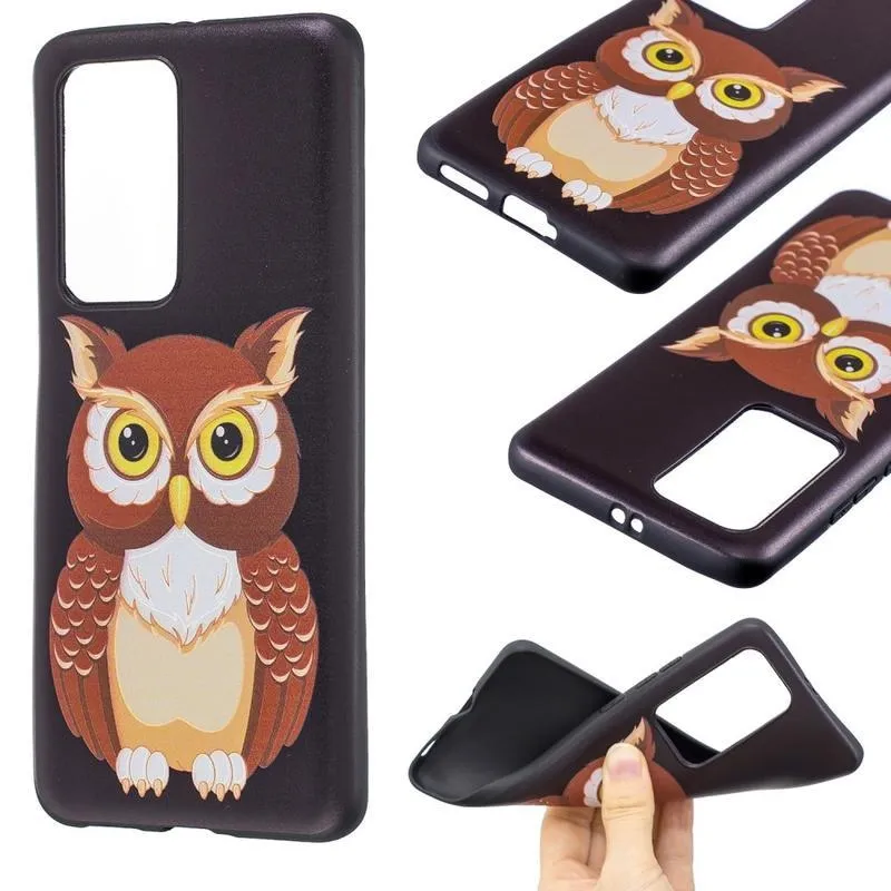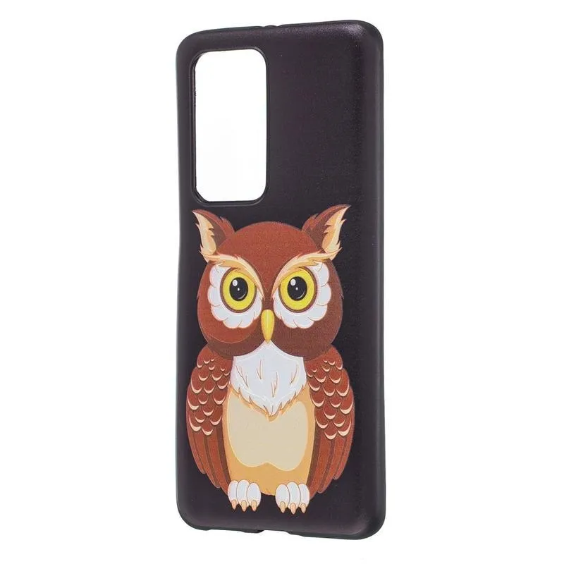 Dombornyomott zselés tok mobil Huawei P40 Pro - barna bagoly