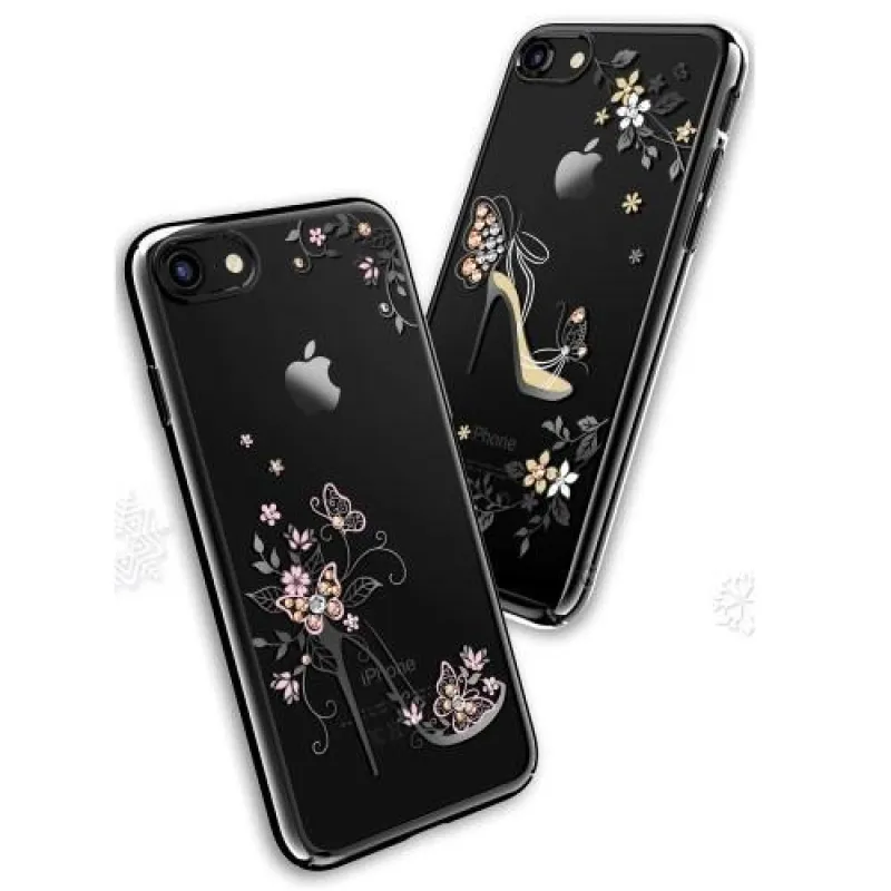 Drágakövekkel díszített műanyag tok iPhone 8 Plus és 7 Plus készülékhez - pillangós papucs