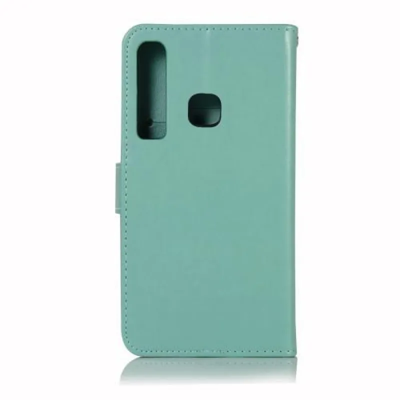 Praktikus és elegáns PU bőr pénztárca tok Samsung Galaxy A9 - cián színű