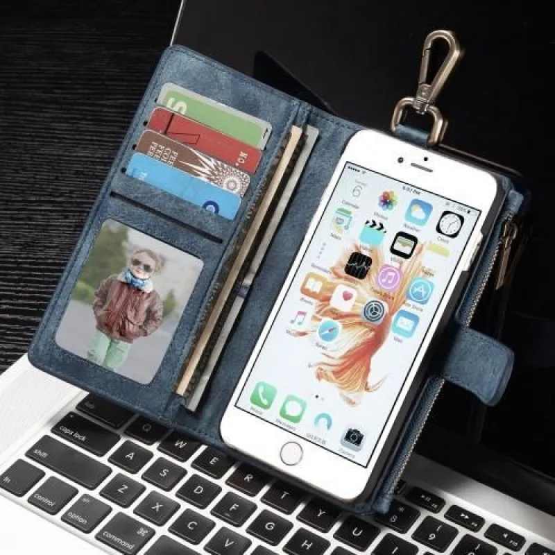 Dupla, kétrészes pénztárcatárca tok iPhone 6 Plus és 6s Plus készülékhez - kék