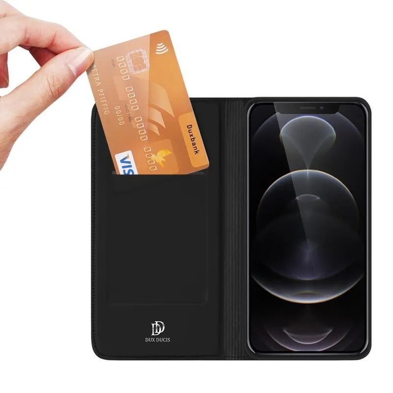 DUX elegáns PU bőr tok iPhone 13 Pro 6.1 készülékhez - fekete