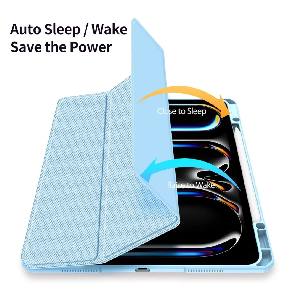 A DUX intelligens záródású tok elölről és hátulról is teljesen megvédi a tabletedet. iPad Pro 13 (2024) készülékhez tervezve - világoskék